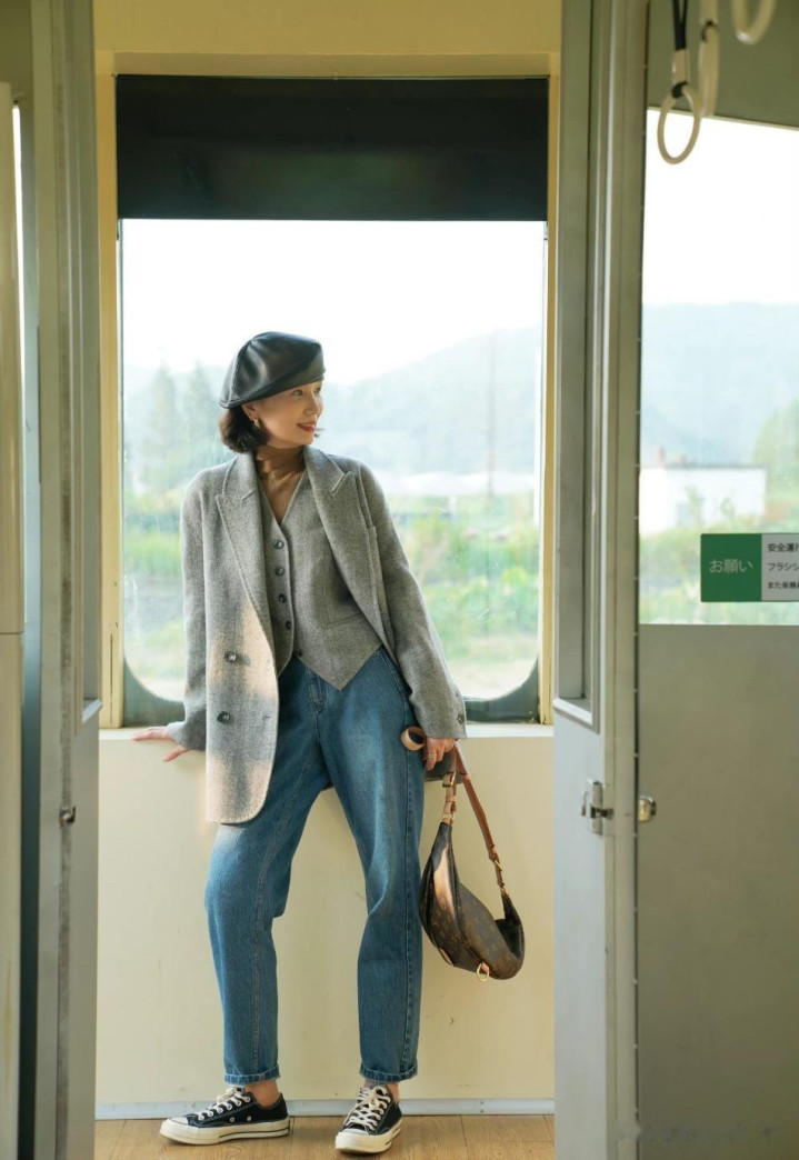若是说短发是三木姆妈的基础底色,那么帽子即是她振领提纲的魔法说念具。我仔细不雅察她近三年的穿搭发现,帽子出现频率高达90%。这毫不是巧合,而是尽心绪划的造型战术——宽檐弁冕能修饰圆脸型的面部线条,贝雷帽能柔化方脸型的硬朗感,而报童帽则通过立体的帽型升迁长脸型的视觉要点。